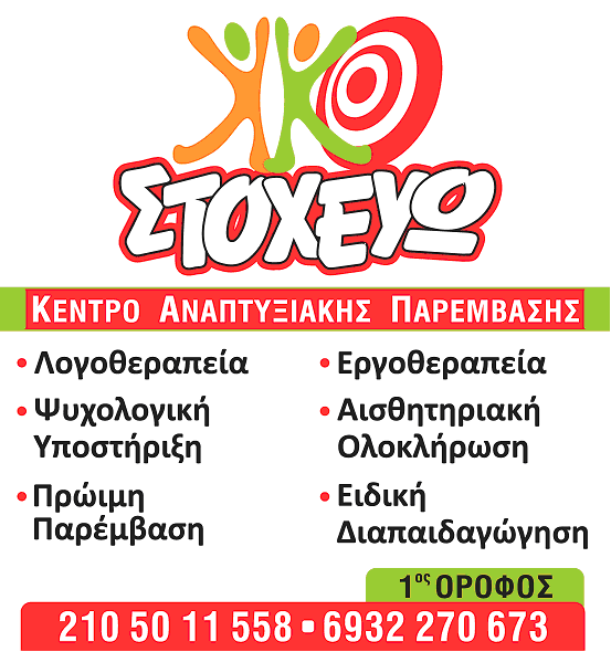 ΠΕΤΡΟΥΠΟΛΗ | Λογοθεραπεία | ΠΕΤΡΟΥΠΟΛΗ | “ΣΤΟΧΕΥΩ” | Εργοθεραπεία | Πετρούπολη | Εργοθεραπεύτρια | Καματερό | Κέντρο Αναπτυξιακής Παρέμβασης “Στοχεύω” | Αισθητηριακή Ολοκλήρωση | Εργοθεραπεύτρια | Ίλιον | Πρώιμη Παρέμβαση | Άγιοι Ανάργυροι | Εργοθεραπεύτρια | Πετρούπολη | Καματερό | Ίλιον