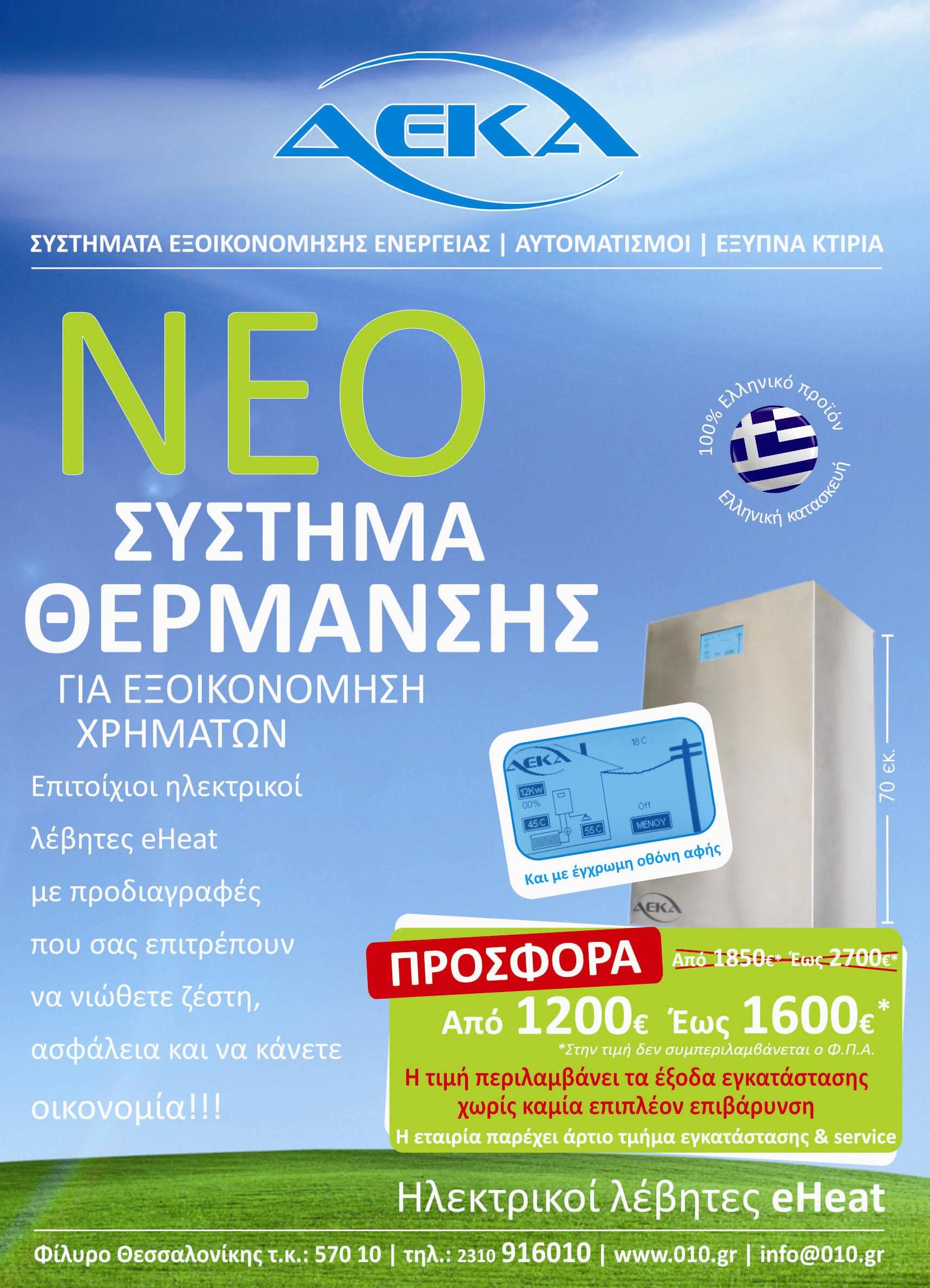 Εορταστική Προσφορά. Εγκαταστήστε Τον Ηλεκτρικό Λέβητά Μας, Με Τη Μέγιστη Εξοικονόμηση Ενέργειας Και Σε Οικονομική Τιμή. Ίσως Ο Μόνος Λέβητας Inverter Που Κατασκευάζεται Στην Χώρα Μας. Μόνο Για Εσάς. Η Δεκα Σας Εύχεται Καλές Γιορτές.