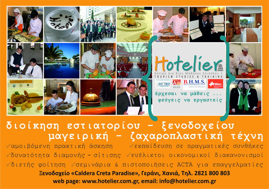 Μαγειρική Τέχνη | Hotelier Tourism Studies & Training | Κρήτη | Ζαχαροπλαστική Τέχνη | Αθήνα | Hotelier Tourism Studies & Training | Διοίκηση Ξενοδοχείου | Ρόδος | Διοίκηση Εστιατορίου | Κυκλάδες | Hotelier Tourism Studies & Training