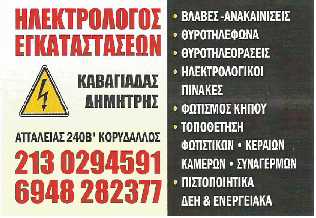 Ηλεκτρολογος Εγκαταστασεων Καβγιαδας Δημητρησ.
