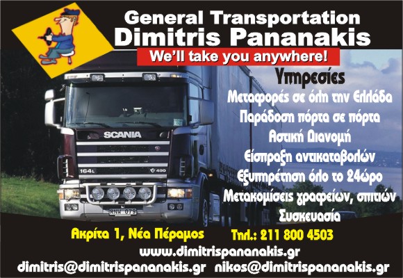ΜΕΤΑΦΟΡΕΣ ΜΕΤΑΚΟΜΙΣΕΙΣ Μεταφορική ΠΑΝΑΝΑΚΗΣ | Νέα Πέραμος, Ελευσίνα, Ασπρόπυργος, Χαϊδάρι, Αιγάλεω, Περιστέρι, Αχαρναί | Αττική, Αθήνα,Θεσσαλονίκη | Παράδοση Εμπορευμάτων | Μεταφορές – Μετακομίσεις – Αμπαλάζ – Αποσυναρμολόγηση – Συναρμολόγηση | Ανυψωτικοί Γερανοί | Φορτηγά μεταφορών | Είσπραξη Αντικαταβολών | Νέα Πέραμος, Αττική, Αθήνα,Θεσσαλονίκη & Σε όλη την Ελλάδα