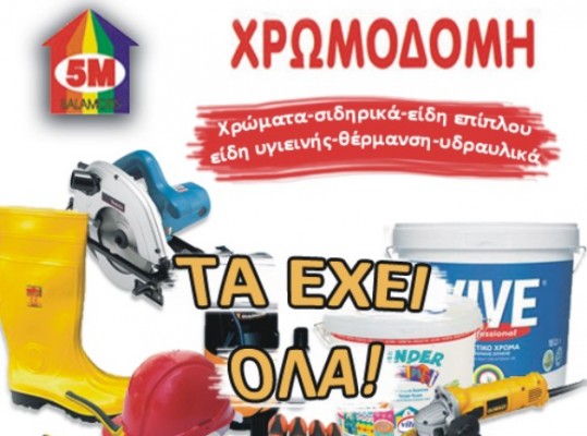 Χρωμοδομή Μπαλαμώτης Θεοφάνης | Χρώματα | Άνω Λιόσια | Εργαλεία | Ηλεκτρικά είδη | Υδραυλικά είδη | Δομικά Υλικά | Εργασιακή Προστασία | Άνω Λιόσια | Ίλιον | Πετρούπολη
